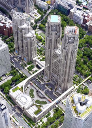 東京都庁舎と都議会議事堂(左下)