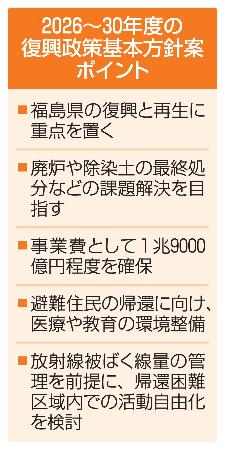 「第3期復興・創生期間」と位置付け、事業費として1兆9千億円程度を確保する。第2期の21~25年度は約1兆6千億円。住民帰還など復興を加速させるため、金額を上積みする。