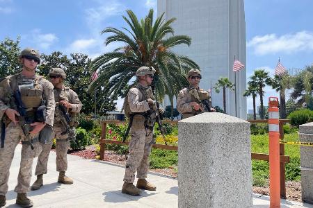 【ロサンゼルス共同】米軍は13日、西部カリフォルニア州ロサンゼルスでの不法移民摘発を巡る抗議デモに対応するため、海兵隊員約200人が現地入りしたと明らかにした。隊員は同日、連邦庁舎の警護を開始し、ロイター通信によると、初めて民間人を拘束した。海兵隊員が現場での展開を始めたことでデモが再び激化する恐れがある。