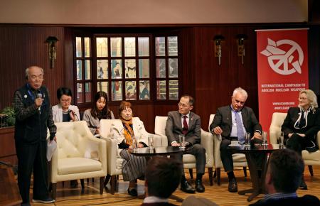 イベントは核兵器廃絶国際キャンペーン(ICAN)と共同で開催。広島市の伊藤正雄さん(84)は原爆が投下された後、犠牲者の遺体を積み上げて火葬する様子やその強烈なにおいが「忘れられない」と振り返った。米国を憎んできたが、米兵が原爆資料館を訪れ、原爆がもたらした惨状に涙を流すのを見て「憎しみは平和を生まない。友人をつくることで平和にたどり着ける」と心境が変化したという。