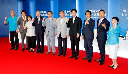 国民民主党は「手取りを増やす夏。」をスローガンにした。れいわ新選組は「れいわ、以外ある?」と消費税廃止や10万円給付といった独自政策の浸透を目指す。参政党は「日本人ファースト参政党」を掲げた。
