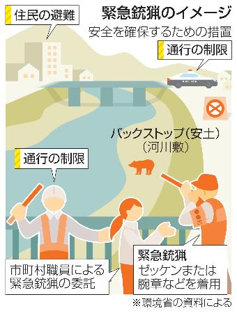 クマなどによる人的被害対策として、一定の条件を満たせば自治体判断で市街地での「緊急銃猟」を可能にする改正鳥獣保護管理法が9月に施行されるのを前に、環境省は8日、発砲までの手順などを示したガイドラインを公表した。環境省は「近隣住民の安全確保が大前提」とし、自治体向けの説明会などを通じて周知徹底を図る考えだ。