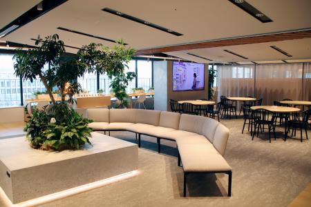 ビルは積水化学工業大阪本社が入る1972年6月完成の堂島関電ビル(大阪市)。地上12階、地下2階の計2万5千平方メートル余りの物件で、2023年3月に着手。改装する階の入居事業者は別フロアに移ってもらいながら進め、空きスペースが足りない場合は近隣ビルの物件を紹介して対応した。