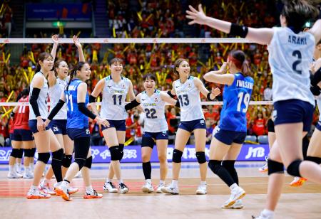 日本は若手の秋本(姫路)や佐藤、和田(ともにNEC川崎)らが得点を重ね、ジュースになった第2セットも27―25で制した。ブラジルはフランスに3―2で競り勝ち、9勝目(1敗)を挙げた。フランスは3勝7敗。
