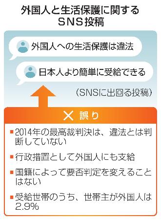 参院選の投開票を前に「外国人への生活保護は違法」「日本人より簡単に受給できる」といった投稿が交流サイト(SNS)上に出回っている。厚生労働省はこうした主張を「間違い」と明確に否定。外国人の保護停止を訴える参政党に対し、識者からは「現実とかけ離れたイメージで語られている。公的なデータや現場を知って」との声が上がる。