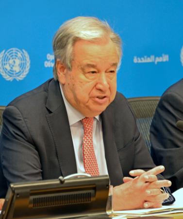 国連本部で記者会見したグテレス氏は15年以降に数千万人以上が電気やインターネットを利用できるようになったことや、再生可能エネルギーの普及などを進展として強調した。