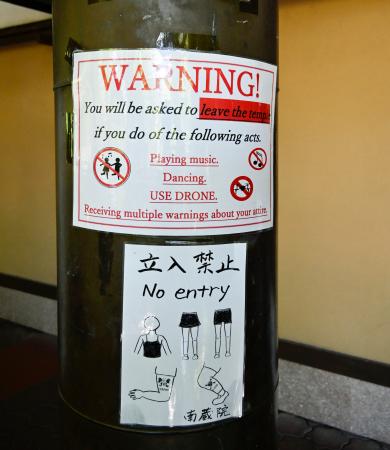 南蔵院には、銅製では世界最大級とされる全長約41メートルの釈迦涅槃像がある。外国人だけの拝観料は5月7日から始めた。像がある区域の入り口に英語で「訪問者」と記した看板を置き、レーンに並んだ外国人が窓口で300円を支払う仕組み。