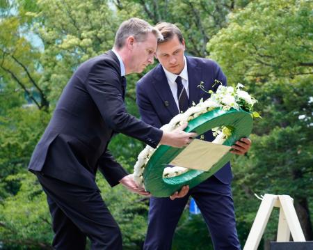 この日、爆心地公園で花輪をささげ、約40分にわたって資料館を見学した。国立長崎原爆死没者追悼平和祈念館で芳名録に「耐え忍び、記憶し、そしてその苦しみを平和への永続的な訴えへと変えてきた人々をたたえます」と記帳した。