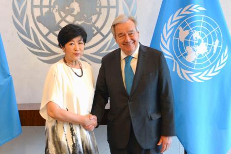 【ニューヨーク共同】米ニューヨークを訪れている東京都の小池百合子知事は24日、国連本部でグテレス事務総長と会談し、国連の一部機能の誘致を提案した。グテレス氏は「各国から協力の申し出がある」と述べるにとどめたという。会談後に小池氏が記者団に明らかにした。国連では組織統廃合を含めた改革の議論が進行中で具体的な回答は控えたとみられる。
