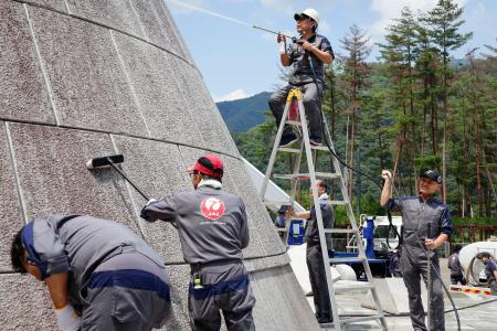 事故があった8月12日の追悼慰霊式に備え、2011年から毎年実施している。機体整備を担う「JALエンジニアリング」の濱本隆士社長(59)は「毎年安全に対する思いは変わらない。事故を風化させず、真摯に向き合う気持ちで活動した」と話した。