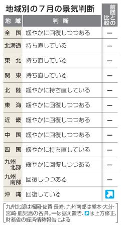 地域別ではインバウンド需要が好調だった沖縄は個人消費を「回復している」、観光を「緩やかに拡大しつつある」に上方修正した。