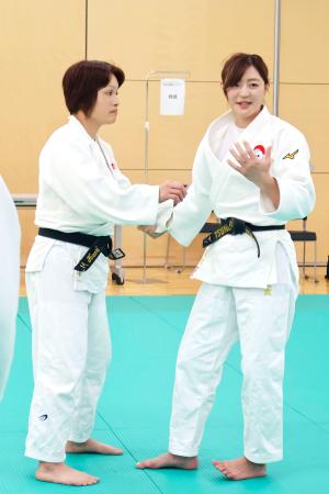 27日で五輪制覇から1年となり「諦めずにやって良かったなとじんわり感じている」と振り返った。この日はトップ選手らが約10人ずつに分かれた群馬県の高校生に得意技を伝授。角田はともえ投げと関節技を指導した。