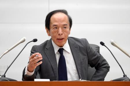 日銀は31日の金融政策決定会合で政策金利を0・5%程度で維持することを決めた。金利据え置きは4会合連続。植田和男総裁は記者会見で「経済や物価情勢の改善に応じて引き続き政策金利を引き上げる」と述べ、これまでの利上げ方針を堅持する考えを示した。今後の利上げ時期を慎重に探る。日米関税交渉の合意は「大きな前進だ」と評価した。コメ価格の上昇を受け物価見通しは引き上げた。