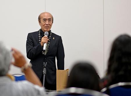 2歳の時に広島で被爆し、12歳で白血病により亡くなった佐々木禎子さんを題材にしたミュージカルが福岡市で上演されるのを前に、兄で自身も被爆者の雅弘さん(84)=福岡県那珂川市=は31日、出演する米ハワイ州の若者や子どもらに「アメリカと日本はかつては戦争した国で考え方が違う。それを乗り越える心がけは禎子の思いやりの心だ」と講話した。