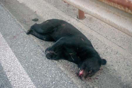 31日午後6時40分ごろ、山口市の中国自動車道上りで乗用車がクマと衝突したと110番があった。県警高速隊によると、運転手の30代男性が左手首に擦り傷を負った。同乗者の30代男性にけがはなかった。クマは事故後も中央分離帯付近でうずくまっていたが、1日午前5時半ごろ、死んでいるのを市などが確認、死骸を撤去した。