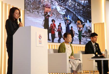 大阪・関西万博で1日、国際支援機関で働く30~40代の職員4人が活動を報告し、大阪府内の高校生と議論するイベントが開かれた。奉仕団体「国際ロータリー」の主催で、職員は「他国に行かなくても無数の情報を得られる時代だが、誤解や偏見も含まれる。自分の目で現場を見て」と語った。