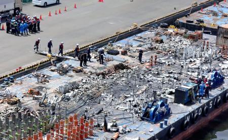 横浜市で開かれたイベントの花火大会中に起きた台船火災で、神奈川県警などは6日、花火を打ち上げていた台船に乗り込み、現場の状況を調べた。県警によると、主催者側は打ち上げる機械が制御不能になったと当初説明しており、経緯を詳しく確認する。