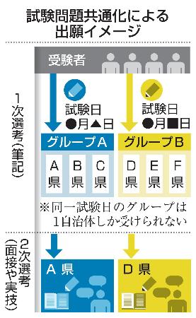 現時点の想定では、共通化するのは問題作成のみで、試験運営や成績処理は各教委が行う。問題作成は外部機関に委託し、各教委で問題の確認作業を分担する。筆記試験の実施日を複数設けられるように問題は複数パターン用意し、同じ試験日の教委は同一問題を使用。試験日が同じ教委は一つしか受験できないが、別日程は併願できる。