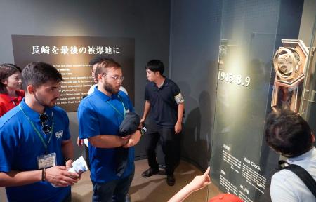 イスラエル人のエリヤシブ・ニューマンさん(27)は被爆者の証言ビデオを食い入るように見つめ、静かに涙を拭った。自国の核兵器について「長崎が受けたような壊滅的な被害が起きてほしくない。今日見たことを友人や家族にも伝えたい」と語った。