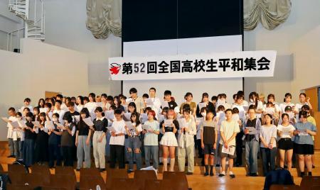 高校生らが平和について学び交流する「全国高校生平和集会」が8日、長崎市で開かれ「政府の行為で再び戦争の惨禍が起こらないようにすると決意する」との決議をまとめた。15都道府県とドイツから約140人が参加。5日には広島市でも約150人が集った。2005年以来、20年ぶりに両市で開催した。