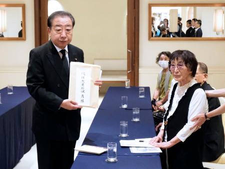 立憲民主党の野田佳彦代表は9日、訪問先の長崎市で被爆体験者の岩永千代子さん(89)らと面会し、石破茂首相宛ての要望書を預かった。岩永さんらは、首相に直接思いを伝え、要望書を渡す機会がないなどと説明。野田氏は「私がメッセンジャーを担う。思いを届けるなら何でもする」と約束した。岩永さんは「本当にうれしい」と謝意を示した。