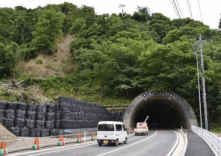 トンネル片側の出入り口が土砂でふさがれ、反対側も冠水しているのを現場に居合わせた県職員が確認した。県が復旧作業を進めている。