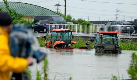市内で無線操縦装置の店を営む男性店主は、店から泥水をのける作業に追われた。商品の一部も水に漬かり「いつ営業再開できるか分からない」と途方に暮れた様子。同市の無職女性(74)は「トイレを使った際に下水があふれ出した。ずっと寝られない」と不安そうに語った。
