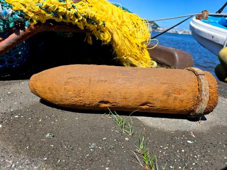12日午前10時50分ごろ、北海道稚内市の稚内港の沖合でナマコ漁をしていた底引き網漁船の関係者から「網に不発弾らしき物が2個かかり、引き揚げた」と稚内海上保安部に届け出があった。