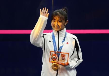 国際総合大会のワールドゲームズは12日、中国の成都で行われ、スカッシュ女子シングルス決勝で渡辺聡美(Greetings)がフランス選手を3―0で破って優勝した。(共同)