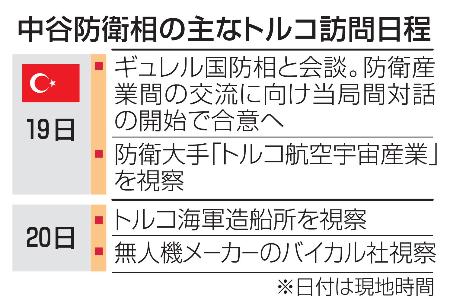 中谷氏はギュレル氏との会談で、防衛装備品や技術協力の在り方を協議。地域情勢について意見交換するほか、自衛隊とトルコ軍の部隊間交流を促進する意向だ。