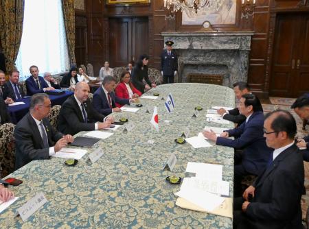 関口昌一参院議長は26日、国会内でイスラエルのオハナ国会議長と面会し、パレスチナ自治区ガザの人道状況の悪化に懸念を伝えた。「武力衝突により多くの市民が犠牲となっていることに胸を痛めている」と述べた。
