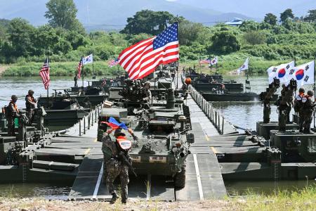 【ソウル共同】米韓両軍は27日、ソウル近郊の京畿道驪州市で合同渡河訓練を実施し、国内外のメディアに公開した。朝鮮半島有事を想定して18日に始まった米韓の大規模合同演習「乙支フリーダムシールド(自由の盾)」の一環で、抑止力と作戦遂行能力の強化を図った。