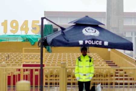 天安門近くの繁華街では27日、大雨の中、レインコートを着た警備員が隊列を組んで警備を強化。地下鉄では抜き打ちの身分証検査で市民数人が当局に足止めされていた。中国の交流サイト(SNS)では「至る所で道路が封鎖され、一目で食品だと分かる袋さえ検査される」といった不満を示す投稿もあった。