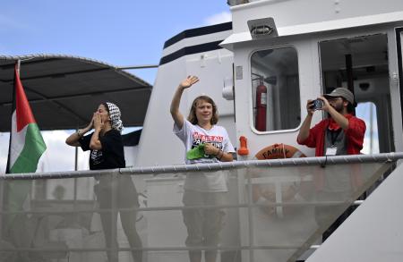 【ロンドン共同】スウェーデンの環境活動家グレタ・トゥンベリさん(22)らを乗せた「グローバル・スムード船団」が8月31日、パレスチナ自治区ガザに向けスペイン・バルセロナを出発したが、荒天のためバルセロナに引き返した。後日改めて出発する。AP通信が1日伝えた。