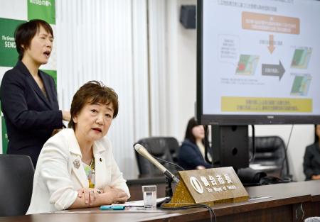 仙台市の郡和子市長は2日の記者会見で、大規模な森林伐採を伴う太陽光発電所(メガソーラー)の新設の自粛を求める指導方針を策定したと発表した。同日付で適用する。法的拘束力はないが市の姿勢を明確にして事業者をけん制する狙いがある。郡氏は「豊かな自然を守るため厳しい形で臨みたい」と強調した。