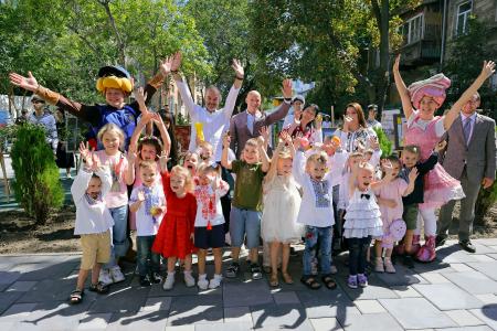 【キーウ共同】ロシアの侵攻を受けるウクライナ南部オデーサ市で3日、姉妹都市提携を結ぶ横浜市と国連開発計画(UNDP)、日本政府の支援により修復した保育園の再開式典が開かれた。式には日ウクライナの関係者が出席し、園児が笑顔で踊りを披露した。
