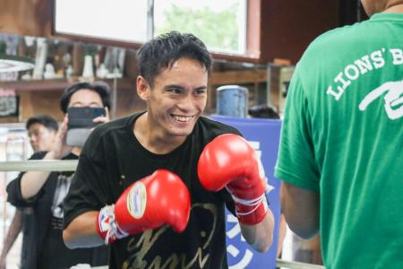 ミット打ちやスパーリングでは笑みをのぞかせる場面もあった。