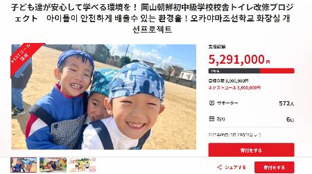 同校では幼稚園児と小中学生の計66人が学ぶ。1970年にできた2階建て校舎のトイレの改修には、1階部分だけでも616万円が必要。ただ、朝鮮学校は国の施設改修の補助適用外で、7月にCFを始めた。