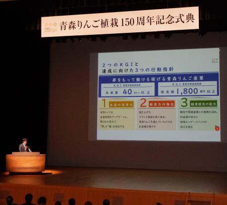 1875年にリンゴが青森県に初めて植栽されてから150年となるのを記念した式典が13日、同県弘前市で開かれた。農家の高齢化で担い手不足が懸念される中、県りんご協会の内山国仁会長は「技術と思考を次の時代の人に伝承し、100年後までリンゴを作っていこう」と呼びかけた。