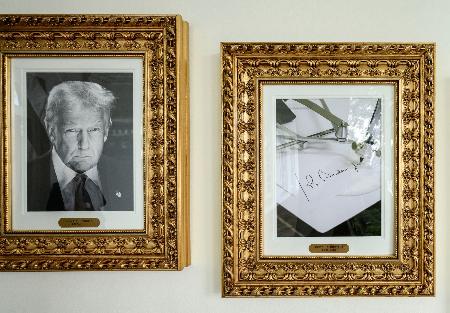 【ワシントン共同】米ホワイトハウスは24日、西棟(ウエストウイング)に歴代大統領を紹介する肖像展示のコーナーを新たに設置したとしてXで様子を公開した。額縁に納まった肖像が並ぶ中、バイデン前大統領の写真だけは本人に代わって自動署名装置「オートペン」になっていた。露骨な嫌がらせだとして批判の声が出ている。