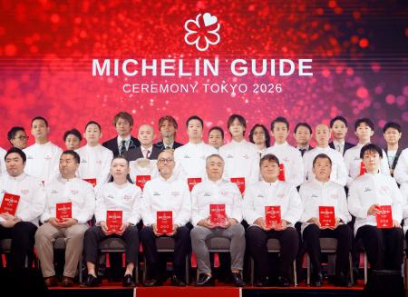 日本ミシュランタイヤは25日、東京のレストラン格付け本「ミシュランガイド東京2026」の掲載店を発表した。最高評価を指す三つ星の店数は昨年と同じ12店で、新たに日本料理の「明寂」(港区)が加わった。
