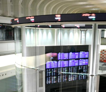 午前終値は平均株価が前日終値比125円14銭安の4万5629円79銭。TOPIXは12・97ポイント高の3198・32を付けた。