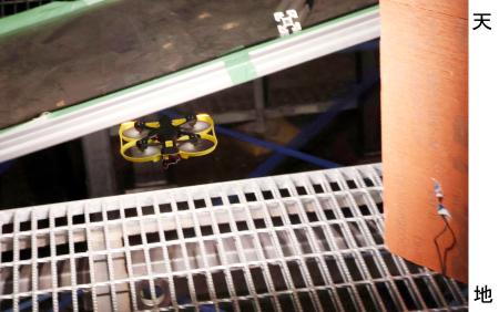 ドローンは今回の調査用に開発し縦13センチ、横12センチ、高さ4センチ、重さ95グラムと大人の手のひらに乗るほどのサイズ。最長で約13分間飛行できる。この日は格納容器を模擬した設備内を飛行させ、搭載するカメラで撮影した。