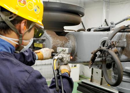 脱線などを防ぐため、鉄道台車は数年に1度傷がないかどうかを検査しており、検査前に塗膜を除去している。これまでの針を打ち付ける方法では手元が強く振動し、粉じんが発生していた。