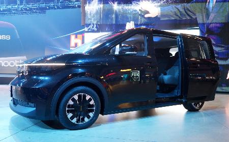 日本向けタクシー車両は、鴻海が開発を進めているEV「モデルA」の参考車両として公開した。