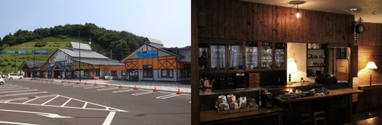 道の駅にしね(左)、高原の珈琲工房 NELCAFE(右)