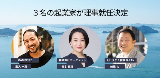 地域を旅する大学 さとのば大学(運営:株式会社アスノオト 代表取締役:信岡良亮、所在地:東京都千代田区、以下当社)は、理事会発足にあたり、日本のソーシャルイノベーションをリードする起業家である3名の理事を新たに迎えることが決定いたしました。国内最大級のクラウドファンディングサイト「CAMPFIRE」創業者である家入一真氏、チームづくりのためのトレーニングプログラムを提供する「株式会社コーチェット」創業者である櫻本真理氏、文部科学省・官民協働海外留学創出プロジェクト「トビタテ!留学JAPAN」を立ち上げた船橋力氏の3名が理事として就任予定です。2025年4月1日より新体制として着任いたします。