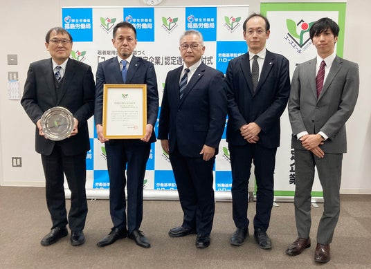 若者の採用・育成に積極的かつ雇用管理状況が優良と認められました。