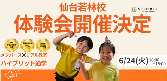今回は、宮城県1校目となるリアル教室【NIJINアカデミー仙台若林校】にて、新たな学びの選択肢を体験できるフリースクール体験会を開催し、メタバース校舎体験などを通じてお子様の興味や特性、発達などに合わせた仙台市若林校での過ごし方を一緒に考えさせていただきます。