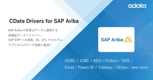 SAP Ariba は、購買・支出管理に利用されているサービスです。企業では支出プロセスの自動化、支出管理による統制強化、コスト削減を目指しています。「SAP Ariba の支出データをERP に経費仕訳として連携したい」、「支出データを管理するために、使い慣れたExcel やPower BI・Tableau などのツールにタイムリーに取り込みたい」というニーズが現場からは聞かれます。しかし、SAP Ariba データの活用にはSAP が提供する新しい連携の仕組みかWeb API でのプログラミング利用が必須となっていました。今回のCData Driver でのSAP Ariba 対応で、SAP Ariba ユーザーは使い慣れたツールを使ってSAP S/4HANA・SAP ERP との連携や、ノーコードでのExcel・BI 連携が可能になります。